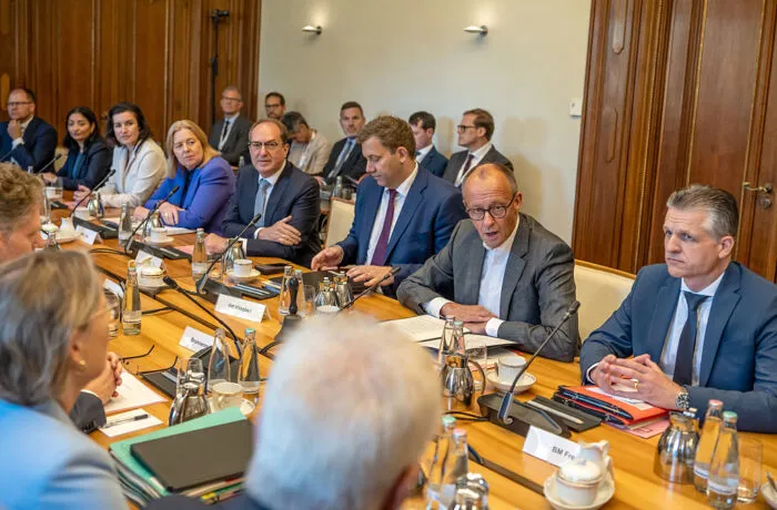 Knapp fünf Monate nach seiner Vereidigung kommt das schwarz-rote Bundeskabinett zu seiner ersten Klausurtagung zusammen. Inhaltlich soll es bei den zweitägigen Beratungen in der Villa Borsig am Tegeler See im Nordwesten Berlins vor allem um Bürokratieabbau, Wettbewerbsfähigkeit der deutschen Wirtschaft und Zukunftstechnologien gehen.
