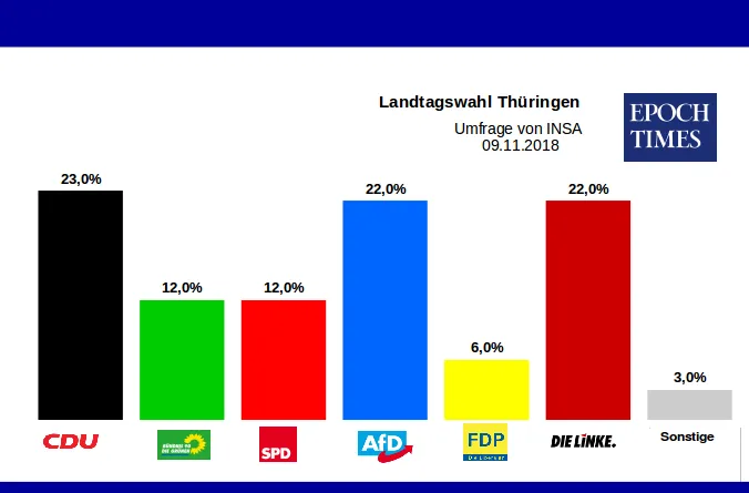 Die letzte Wahlumfrage von INSA zur Landtagswahl Thüringen am 27.10.2019. Grafik: Epoch Times