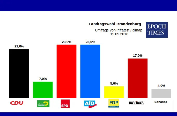 Die letzte Wahlumfrage von Infratest/dimap zur Landtagswahl Brandenburg am 1.9.2019. Grafik: Epoch Times