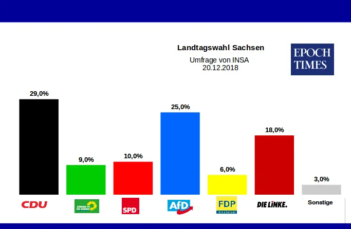 Die letzte Wahlumfrage von INSA zur Landtagswahl Sachsen am 1.9.2019. Grafik: Epoch Times