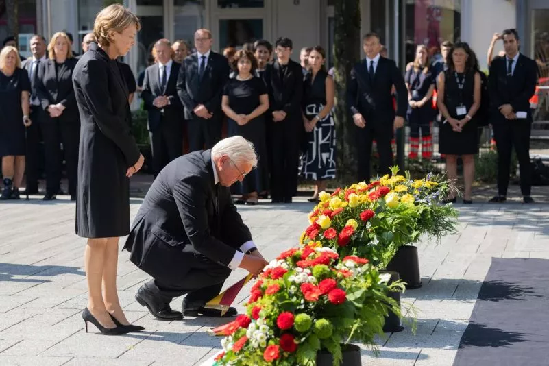 Bundespräsident Steinmeier legt Kranz am Tatort nieder.