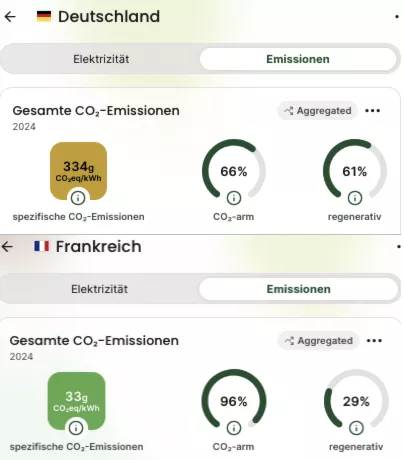 Der CO₂-Ausstoß von Deutschland und Frankreich des Jahres 2024 im Vergleich.