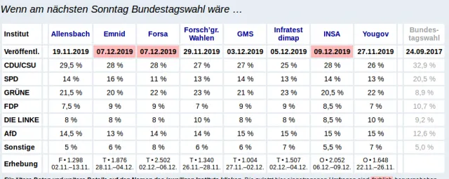 Die Umfrageergebnisse Anfang Dezember 2019.