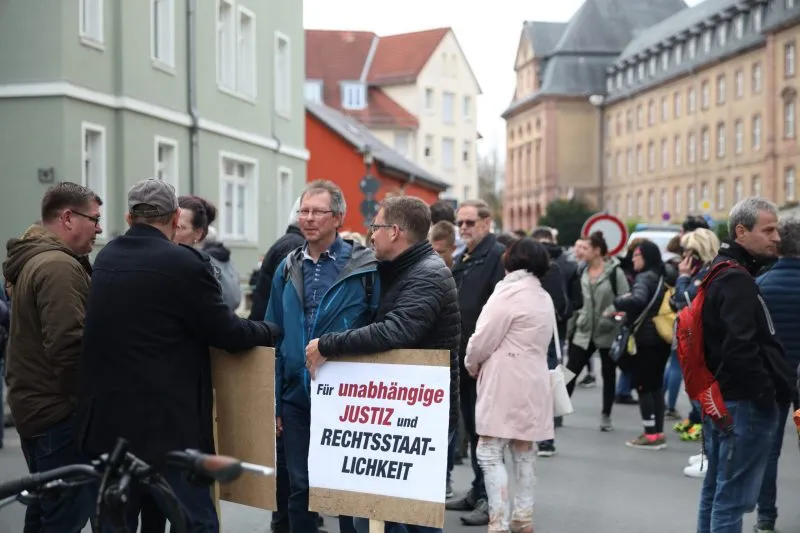 Zu Mittag erklärte Ludwig in einem Beitrag, dass es Menschen in Weimar verboten wurde vor dem Amtsgericht eine Blume niederzulegen, als Zeichen der Solidarität mit den ansässigen Richtern. Auch Pressevertretern soll kurzzeitig der Aufenthalt untersagt worden sein. Das Amtsgericht sei komplett abgesperrt.