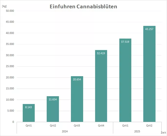 Auch der gesamte Markt expandiert stark: Laut dem Bundesinstitut für Arzneimittel und Medizinprodukte hat sich der Import von Cannabisblüten innerhalb eines Jahres – vom 2. Quartal 2024 bis zum 2. Quartal 2025 – fast vervierfacht. Deutschland hat sich damit zum führenden Absatzmarkt für medizinisches Cannabis in Europa entwickelt.