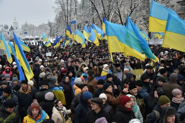 Am 15. Dezember 2018 in Kiew, Ukraine, waren viele Menschen unterwegs, um eine von Russland unabhängige orthodoxe Kirche zu errichten.