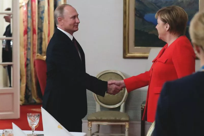 Beim Treffen von Wladimir Putin (L) und Kanzlerin Angela Merkel.