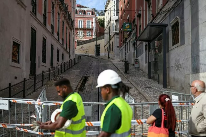 Am Unfallort der Gloria-Standseilbahn, nachdem die Trümmer am 5. September 2025 in Lissabon beseitigt wurden. Bei einem Unfall mit der Standseilbahn am 3. September 2025 kamen 16 Menschen ums Leben und 21 wurden verletzt.