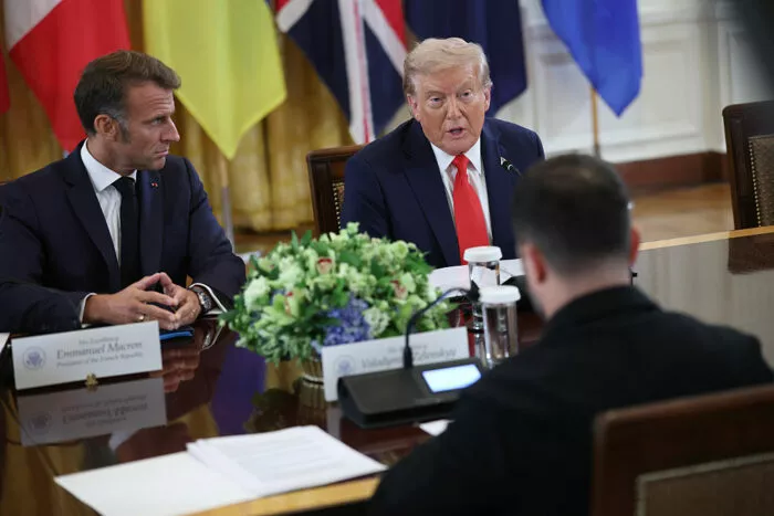 Frankreichs Präsident Emmanuel Macron hat eine Beteiligung europäischer Vertreter an künftigen Gesprächen zwischen der Ukraine, Russland und den USA gefordert. „Ich denke, dass wir als nächsten wahrscheinlich ein Vierertreffen brauchen“, sagte Macron bei einem Treffen mit US-Präsident Donald Trump, dem ukrainischen Präsidenten Wolodymyr Selenskyj sowie europäischen Staats- und Regierungschefs am Montag im Weißen Haus.