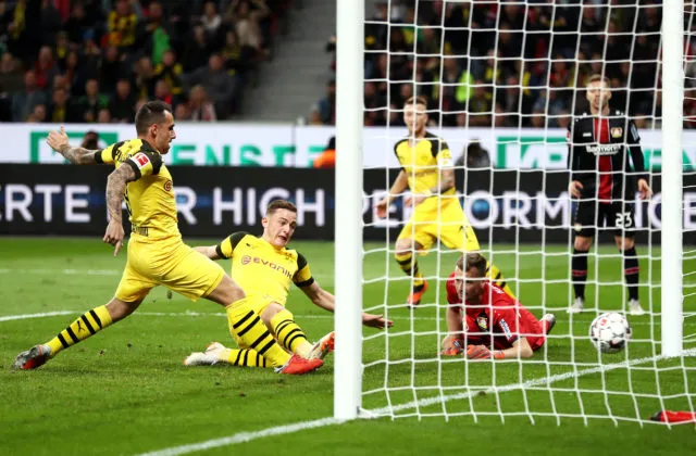 Die Dortmunder mussten nun zwangsläufig offensiver agieren als von Favre offenbar geplant, ihr Spiel war aber trotz der Tor-Gala vom Mittwoch von erstaunlich wenig Überzeugung und Selbstsicherheit geprägt. Die beste Chance bis zur Pause war bezeichnenderweise ein Freistoß von Kapitän Reus, den Bayer-Torhüter Lukas Hradecky aber parierte (36.). Stattdessen nutzt Bayer nach einer Ecke ein Durcheinander in der BVB-Abwehr zum 2:0 durch Tah, für den es sogar der erste Treffer seit 20 Monaten war.