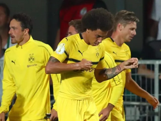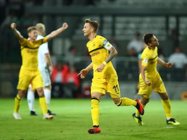 Gerettet von zwei Last-Minute-Toren kann auch Borussia Dortmund mit seinem neuen Trainer Lucien Favre für die zweite Runde des DFB-Pokals planen.