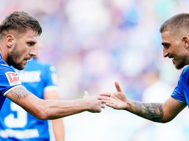 Hoffenheims Bicakcic (l) jubelt mit Stafylidis über den Heimerfolg gegen Werder Bremen.