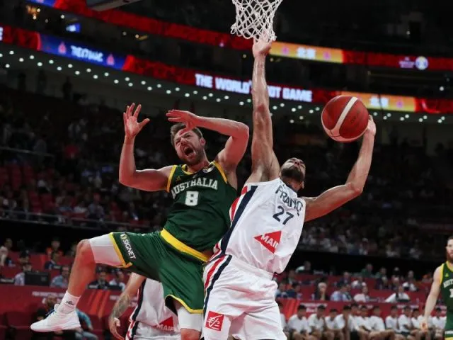 Kampf um Bronze: Australiens Matthew Dellavedova (l) und der Franzose Rudy Gobert.