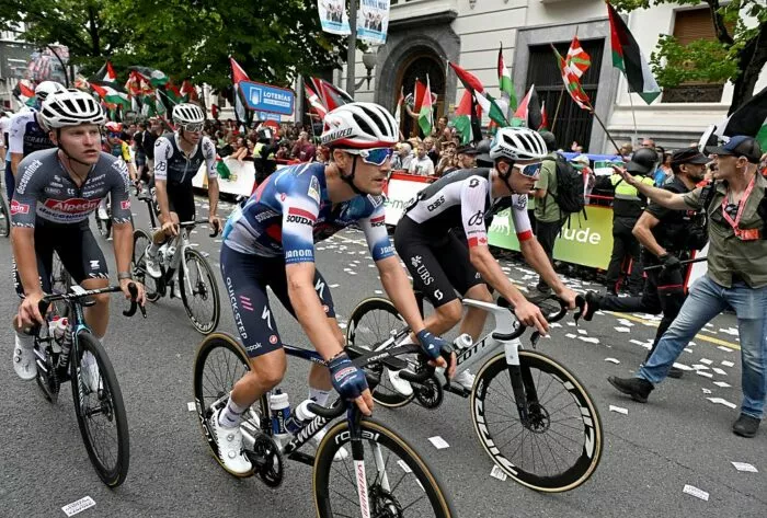 Schon in den vergangenen Tagen hatte es mehrere Vorkommnisse gegeben. Vor allem der Rennstall Israel-Premier Tech ist ins Visier von Protestaktionen geraten. Auf der fünften Etappe hatten Demonstranten das Team im Mannschaftszeitfahren gestoppt.