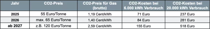• Ab 2027: Vom EU-Emissionszertifikatehandel bestimmt – es sind laut IHK Karlsruhe Werte zwischen 60 und 380 Euro möglich.