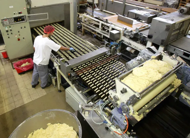 Bei Lambertz – eine Plätzchenmaschine in Aktion.