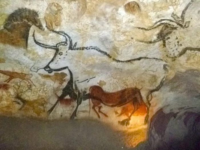 Steinzeitliche Zeichnungen eines Auerochsen aus der Lascaux-Höhle in Frankreich.