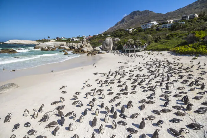 Der Brillenpinguin (Spheniscus demersus) brütet als einzige Pinguinart an den südlichen Küsten des afrikanischen Kontinents, häufig auf vorgelagerten Inseln. Die Weltnaturschutzunion führt ihn seit 2024 auf ihrer Roten Liste als „vom Aussterben bedroht“.