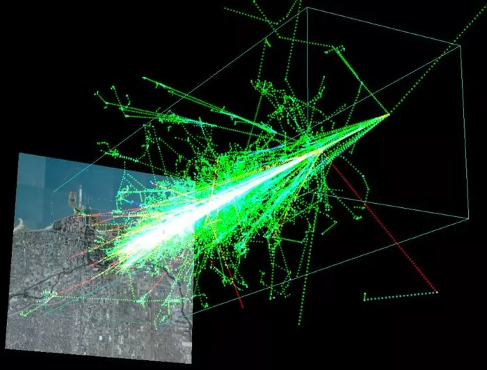 So könnte ein Luftschauer aussehen, wenn er mit bloßem Auge sichtbar wäre.
