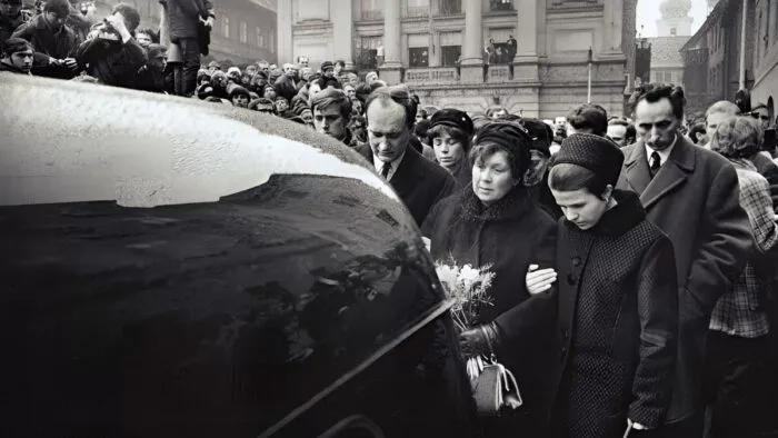 Libuše Palachová beim Begräbnis ihres Sohnes Jan Palach, der sich am 16. Januar 1969 im Zentrum von Prag selbst verbrannte, um gegen die sowjetische Besatzung zu protestieren.