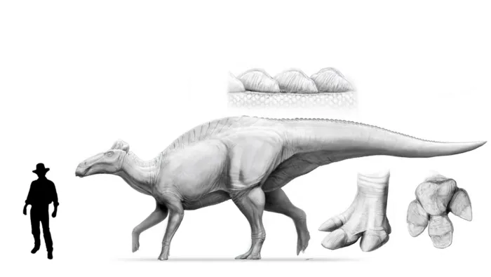 Eine Rekonstruktion ergab, dass der Entenschnabeldinosaurier unbekannte Rückenkämme, Platten und Hufe besaß.