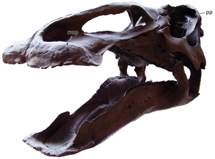 Paläontologen der US-amerikanischen University of Chicago entdeckten jedoch kürzlich überraschend ein weiteres Detail: Hufe. Damit glich das Maul des Dinosauriers dem Kopf einer Ente, der Körper dem einer Echse und die Beine denen eines Pferdes.