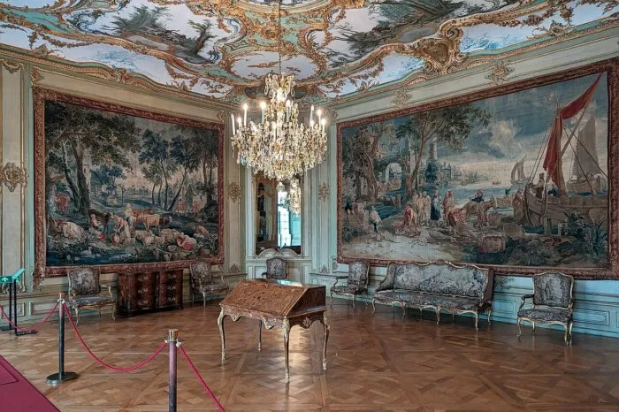 Viele der Decken des Schlosses sind mit Fresken des italienischen Malers Carlo Carlone (1686–1775) gestaltet in einer Kombination aus Stuck, Holzschnitzereien und illusionistischer Quadraturmalerei.