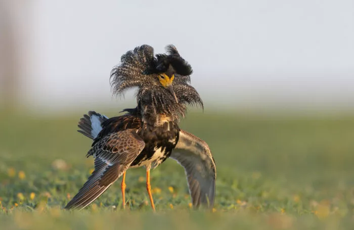 Ein Kampfläufer (Calidris pugnax) im Prachtkleid während der Balz.