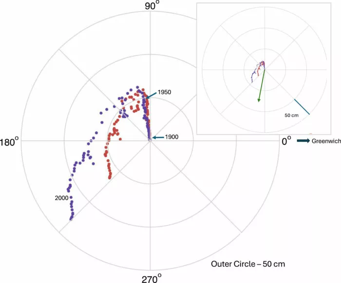 Addiert man die jährlichen Bewegungen aus dem gesamten Zeitraum von 1835 bis 2011 zusammen, haben sich die Pole um 113 Zentimeter bewegt, wobei etwa 104 Zentimeter allein im 20. Jahrhundert geschahen.